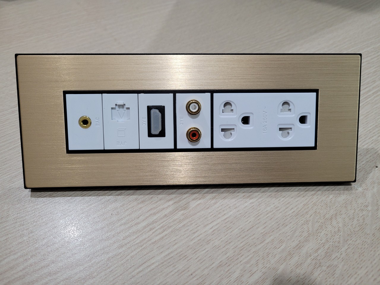 • Hạt công tắc - ổ cắm (cổng kết nối dời) như: ổ cắm điện đa năng, HDMI, VGA, AV, USB,…các module được tích hợp tùy biến theo nhu cầu sử dụng của người dùng.