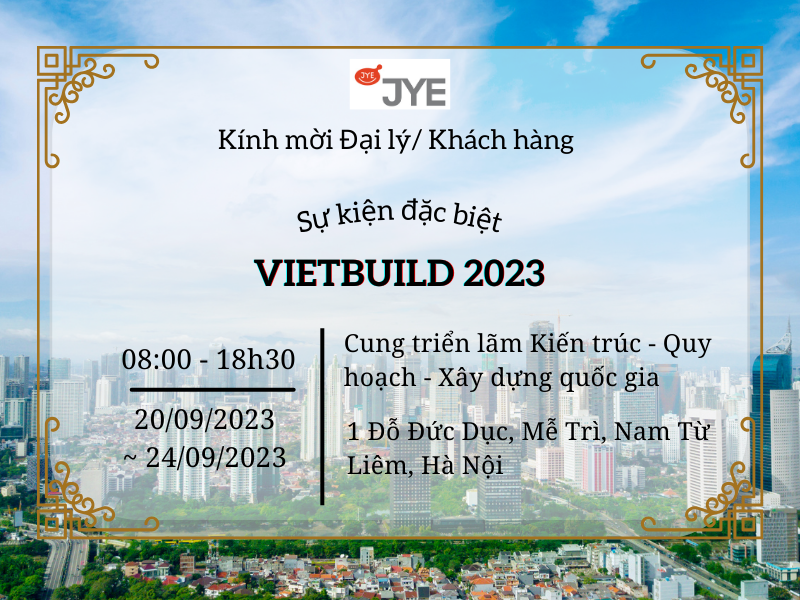 Triển lãm này tập trung trình diễn và giới thiệu các sản phẩm, công nghệ, vật liệu xây dựng, thiết kế kiến trúc, nội thất và các dịch vụ liên quan đến ngành xây dựng. Thiết bị điện Đài Loan JYE rất hân hạnh được mời tham dự Triển lãm lần này. Triển lãm Quốc tế Vietbuild Hà Nội 2023 diễn ra tại Hà Nội từ ngày 20 - 24/9 tại Cung Triển lãm Kiến trúc Quy hoạch xây dựng Quốc gia.